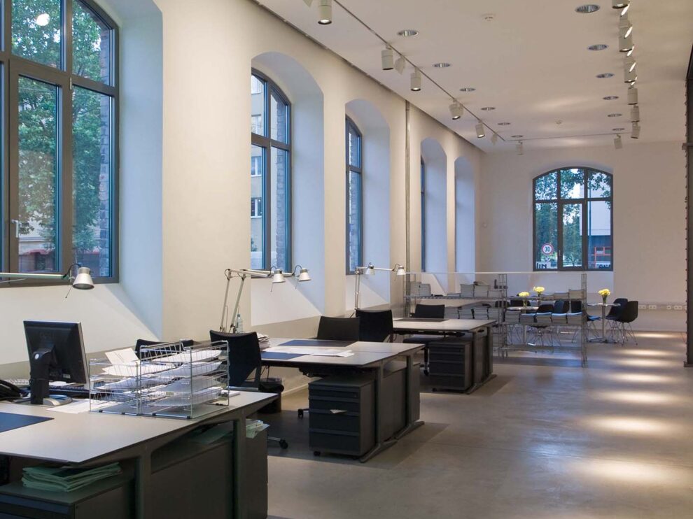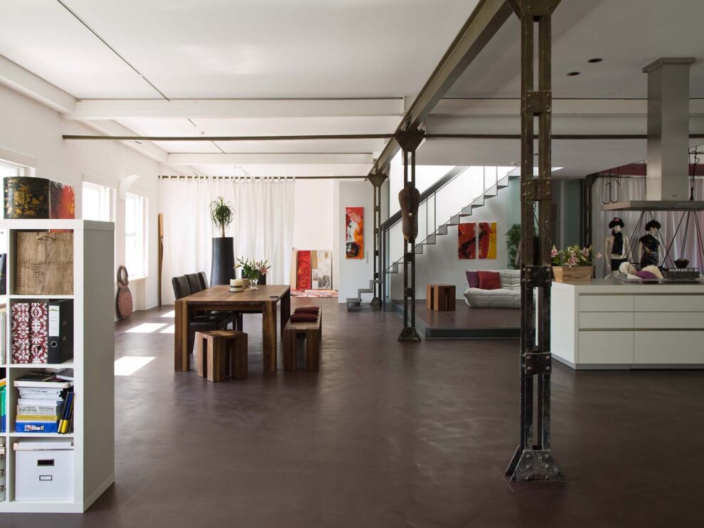 Unter der Devise „Viel Platz, viel Luft, viel Licht“ entstehen neue Lebensräume, die Wohnen und Arbeiten auf weiträumige und offene Weise verbinden. Der originale Industriecharakter wird durch die belassenen Stahlsäulen, eindrucksvolle Raumhöhen und großzügige Fensterflächen hervorgehoben und mit modernen Einbauten kontrastreich kombiniert.