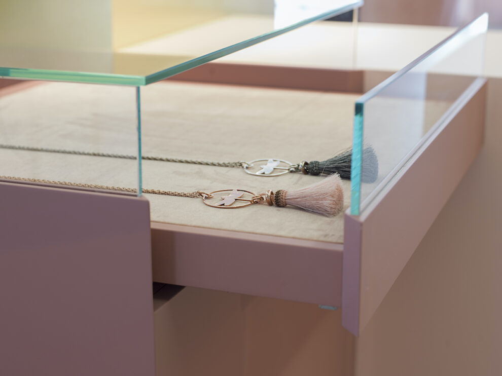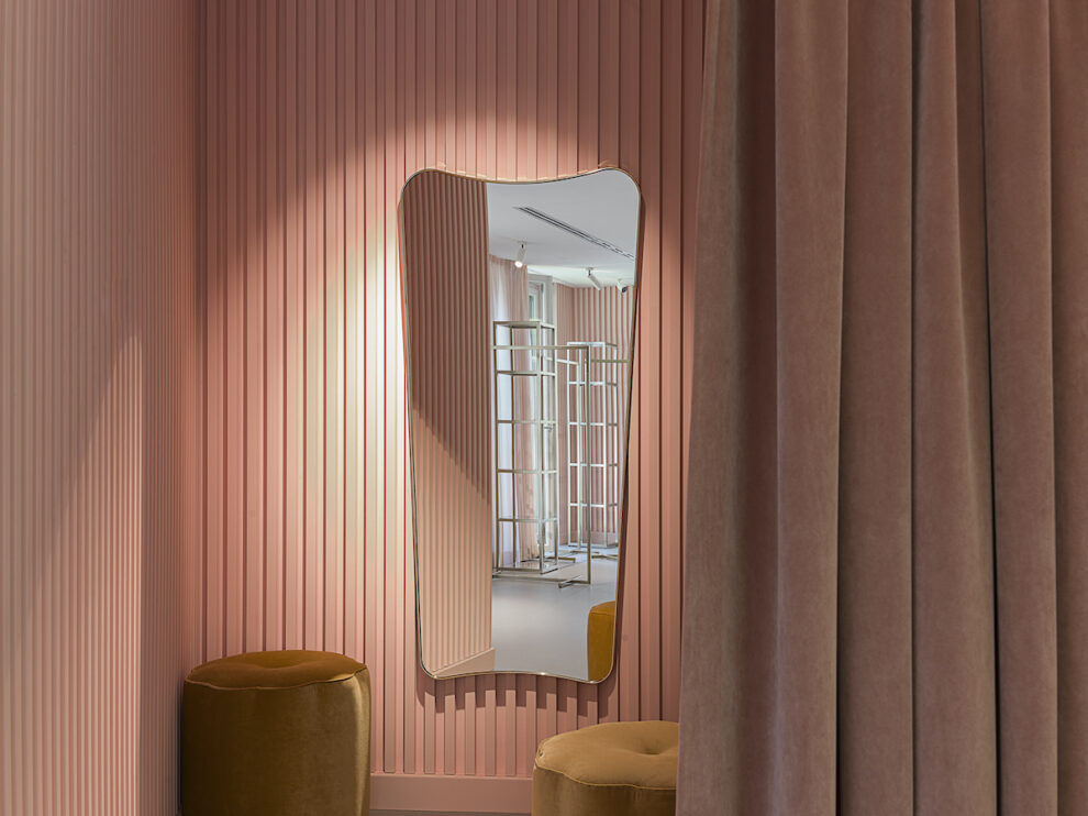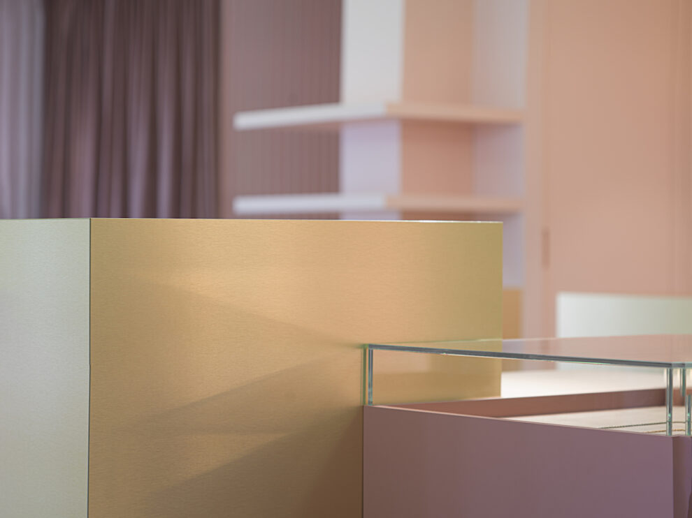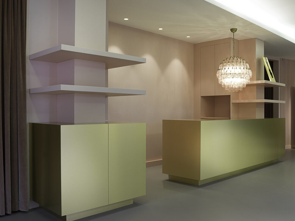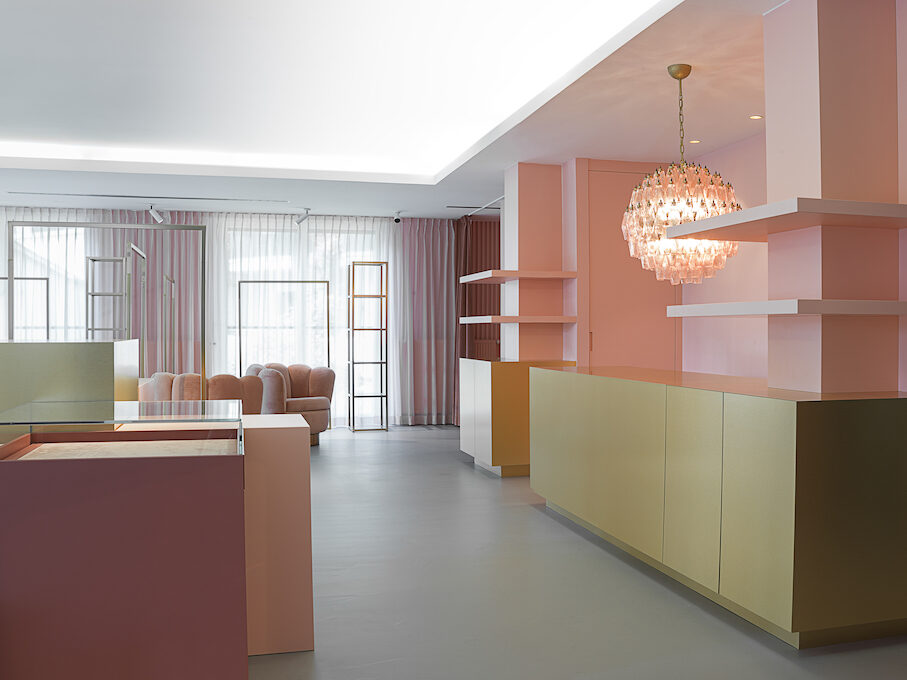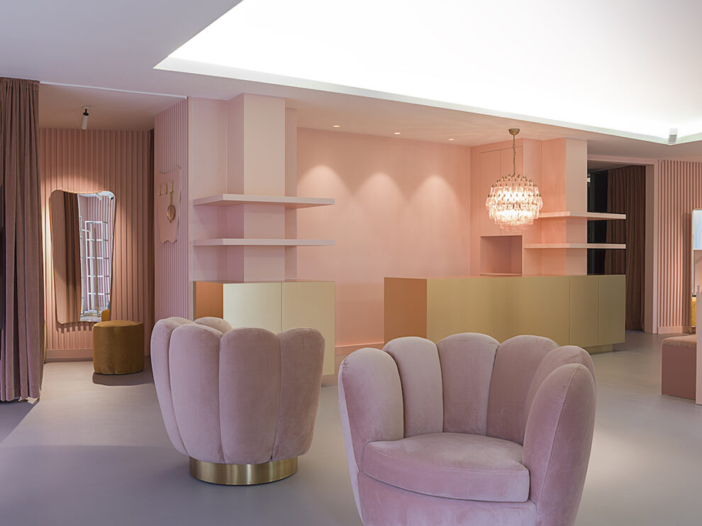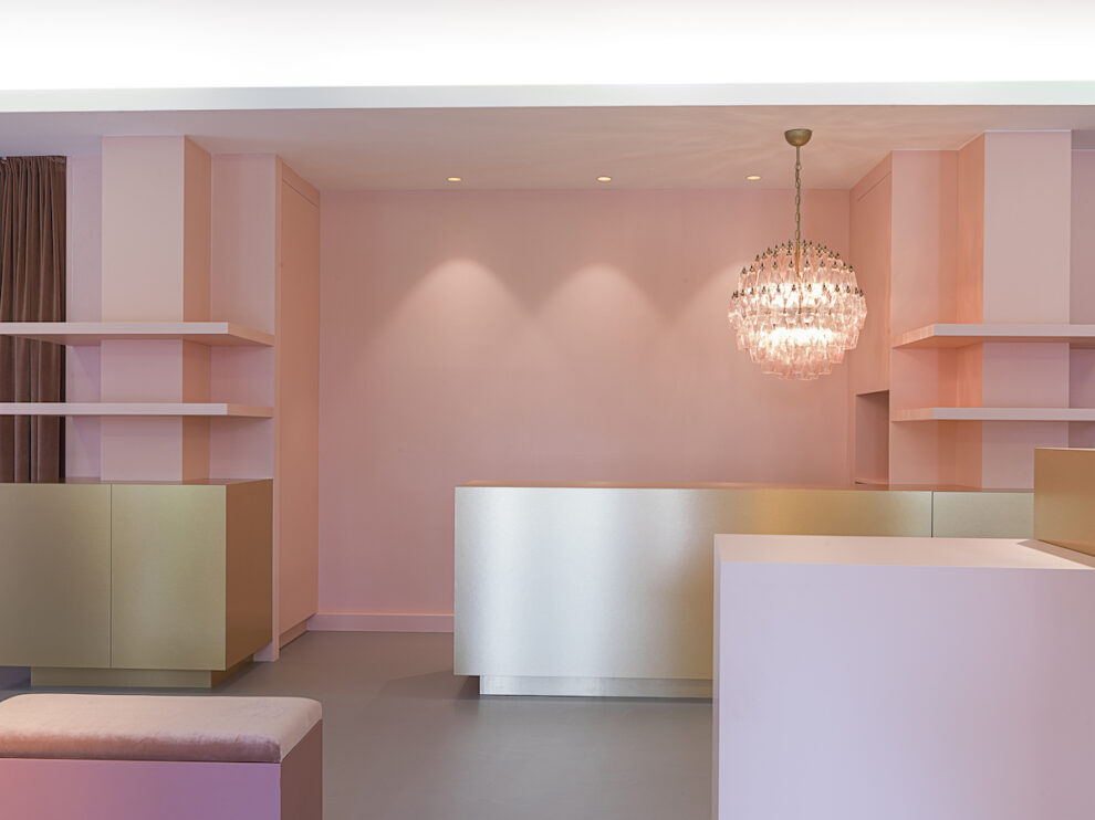 Im 5-Sterne Hotel Reiters Reserve im Burgenland hat der Bellezza-Store durch eine Neugestaltung eine Atmosphäre von distinguiertem Luxus erhalten. Hier ziehen sanfte rosa Töne und das weiche Gefühl von Samt die Blicke auf sich, während sie eine elegante Symbiose mit den glänzenden goldenen Akzenten eingehen. Diese exquisiten Details werden durch den zeitlosen Glanz eines Vintage-Lusters aus Murano-Glas vollendet.