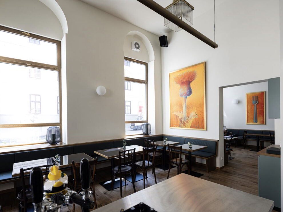 This long-established watering-hole in the Viennese district of Währing, formerly a distillery, has been carefully renovated. The technical installations were also brought up to date, transforming the establishment into a contemporary cosmopolitan eatery without sacrificing any of its historic charm.