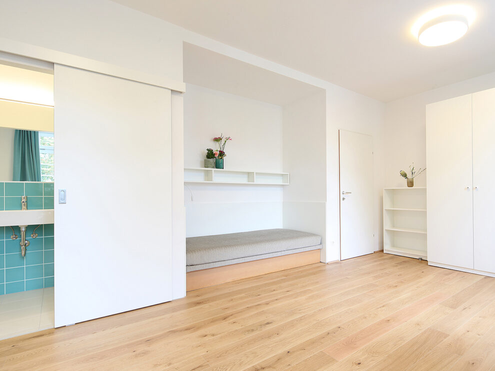 Former communal facilities were transformed into individual accommodation units with private kitchens and bathrooms, meeting the requirements of today’s students while focussing on responsible use of resources. The revitalisation measures likewise help to preserve the local cultural heritage.