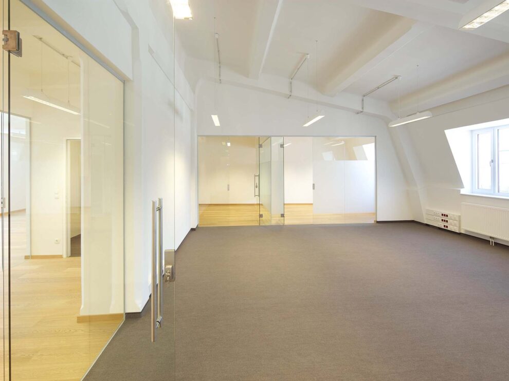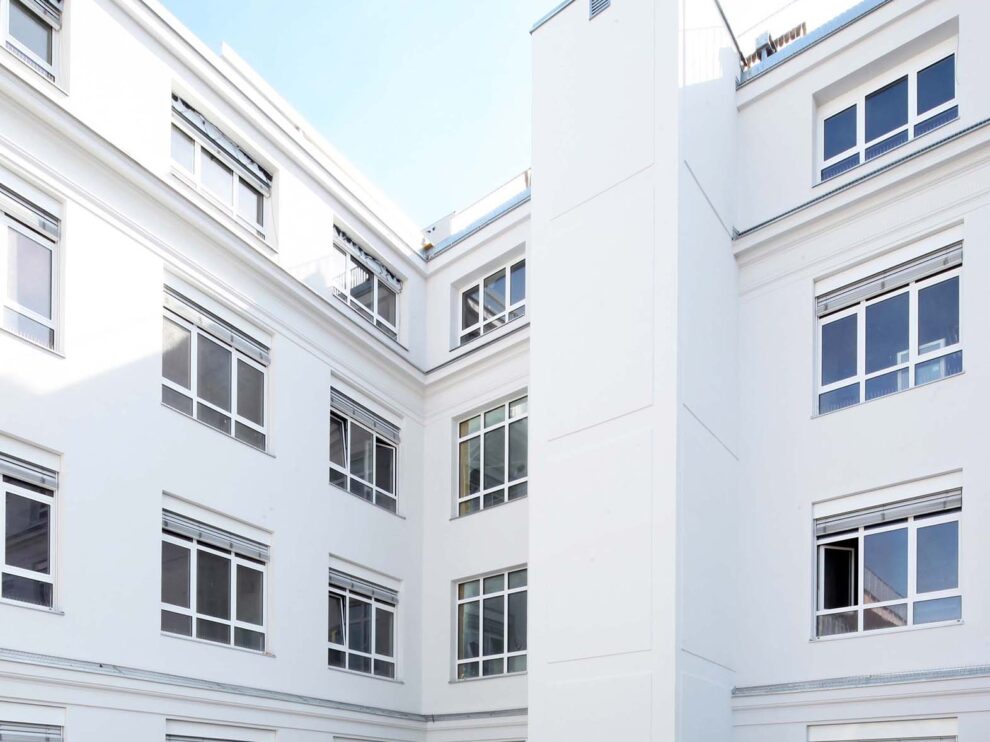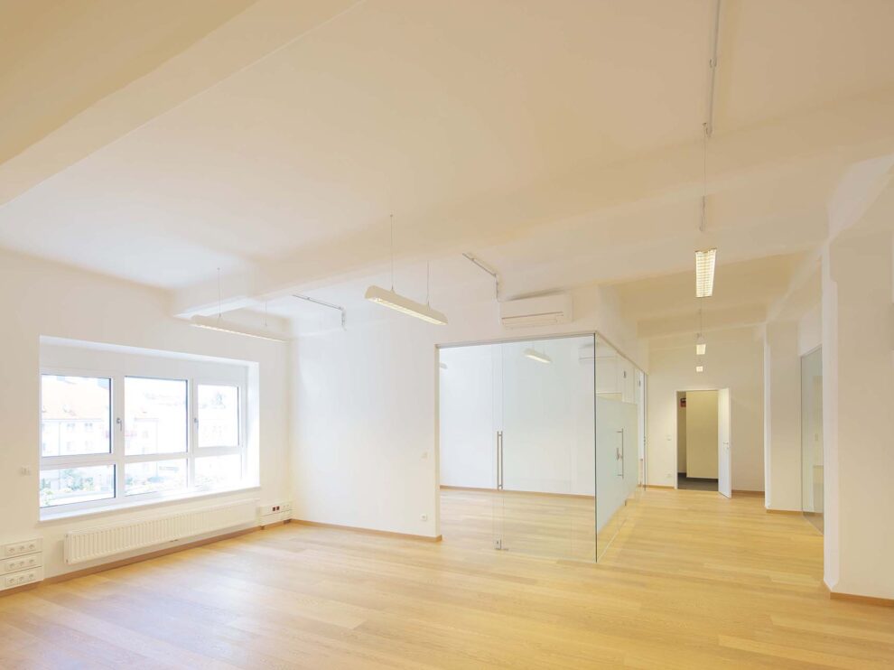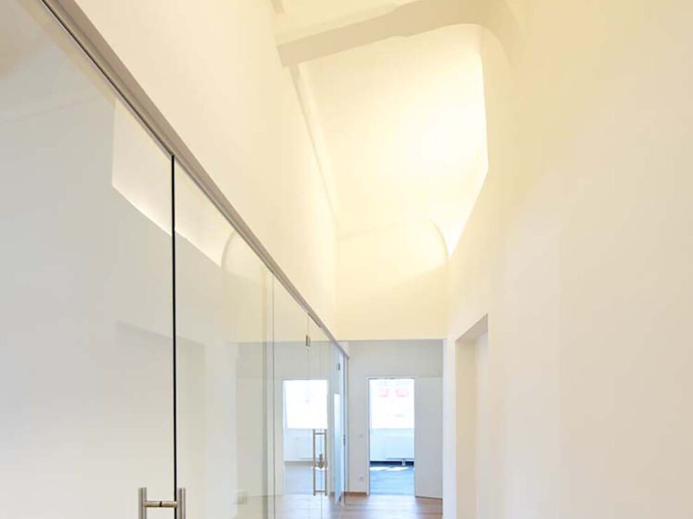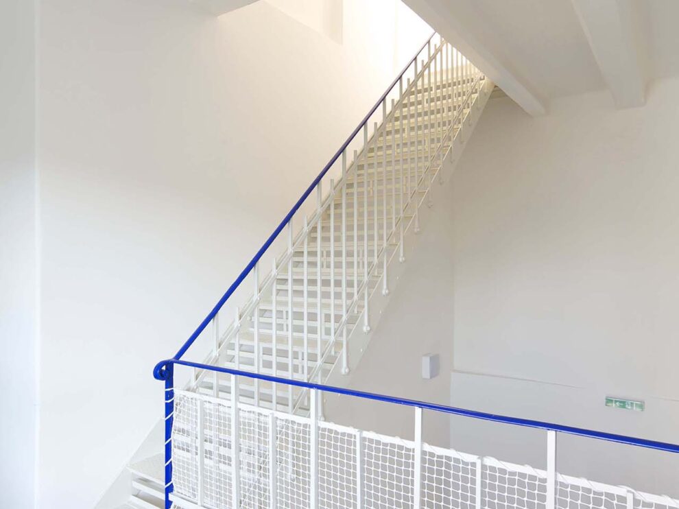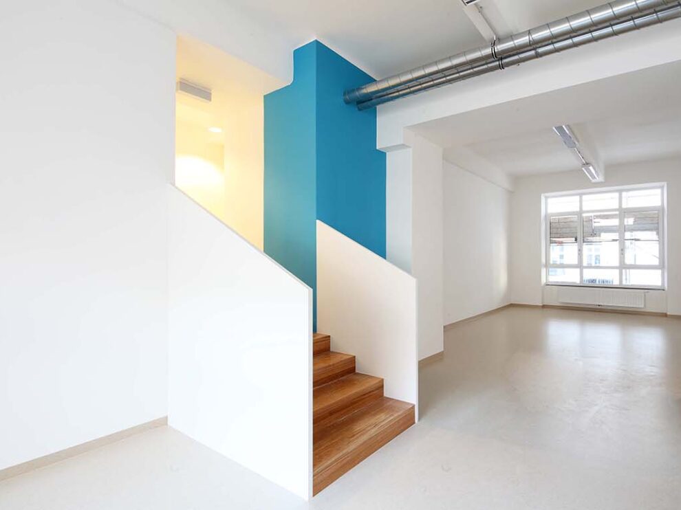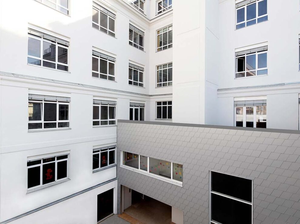 Die zwei untersten Etagen beherbergen eine Kindertagesstätte. Über eine barrierefreie Rampe bietet sie den Jüngsten viel Raum zum Entfalten. In den Etagen darüber breiten sich repräsentativ gestaltete Büros für Medienschaffende aus, die mit teilweise neu errichteten Dachterrassen den Blick auf die Stadt freigeben.